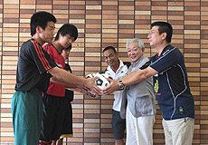 例年の如くまずはOB代表から激励のメッセージ。そして支援のボール贈呈。